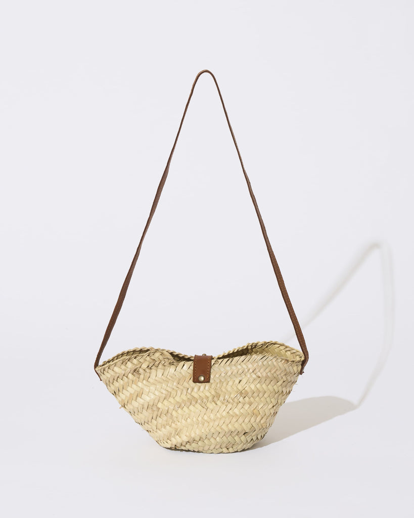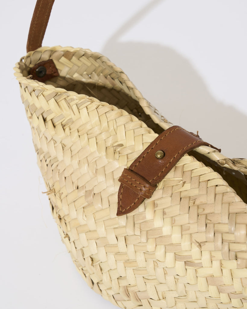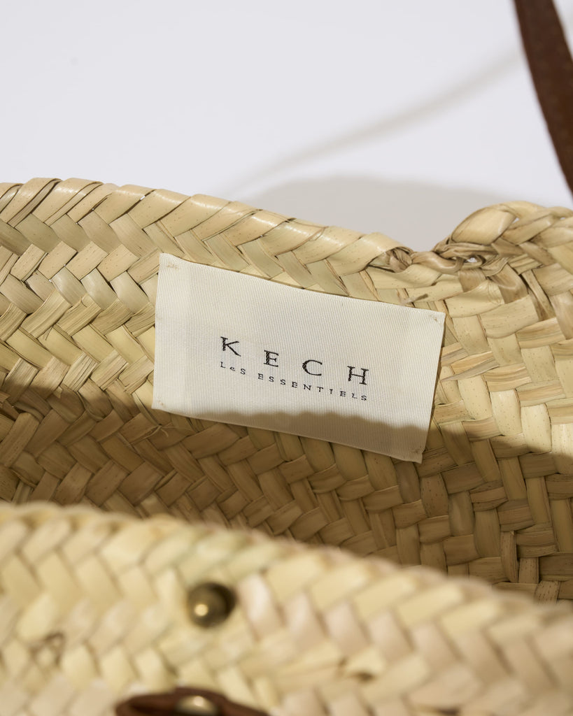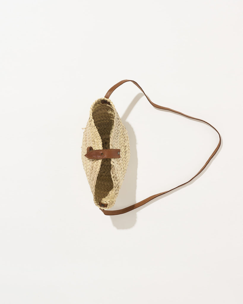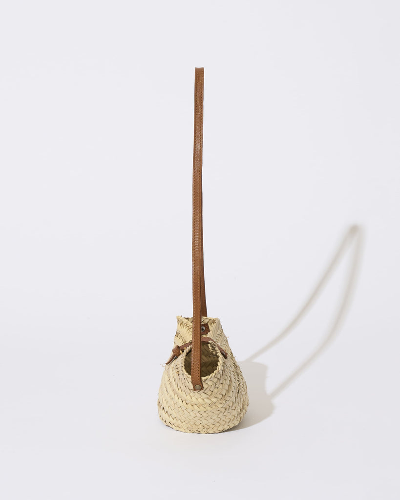 珍しいミニサイズが目を引く「KECH LeS ESSENTIELS(ケッシュ ル エッセンシャル)」のバケツ型のカゴバッグ。1点1点、職人さんの手作りで編まれたぬくもりを感じる一品です。女性らしい雰囲気のミニサイズと、華奢なストラップがポイントです。小さな見ためながらマチがしっかりあるため、スマートフォンや2つ折りのお財布、タオルなどちょっとしたお出かけに必要なものは収納できる利便性の高いサイズ感です。天然素材であるヤシの葉と牛革を使用しており、牛革で作られたストラップは、肩掛けにちょうどよい長さです。レザーのストラップで間口を閉じることができるので安心感もあります。夏のシーズンムードを盛り上げる一品です。