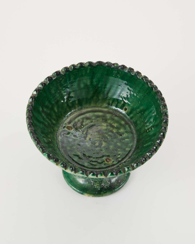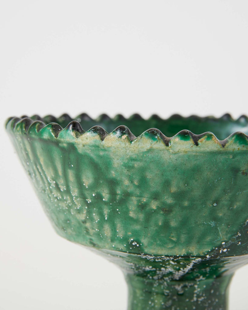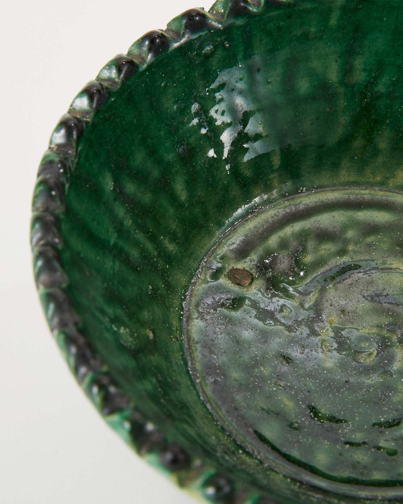 ヘナペーストを入れる容器として使われており、手についたペーストを落とすために作られた縁の凸凹が特徴的。