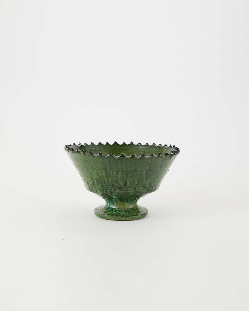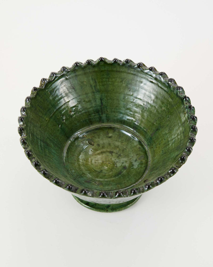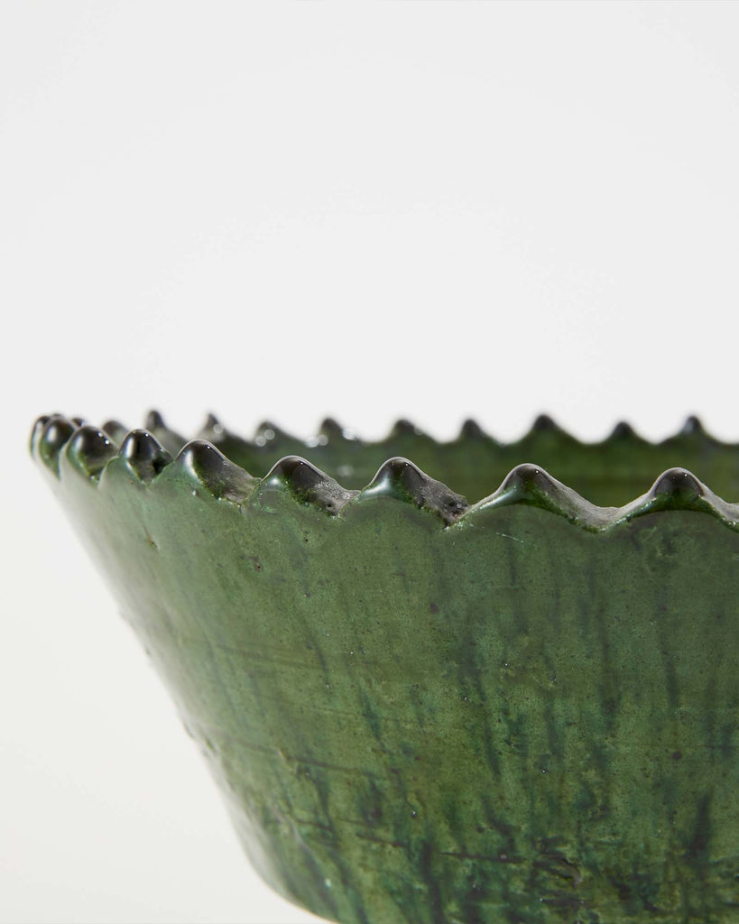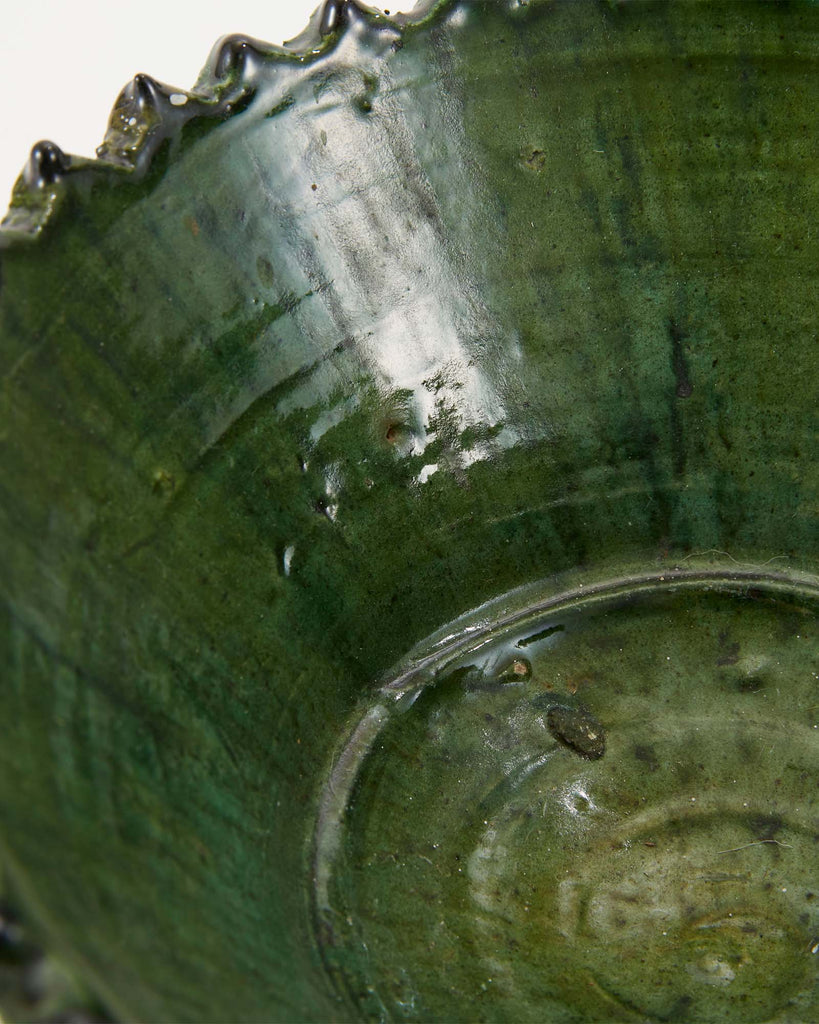 ヘナペーストを入れる容器として使われており、手についたペーストを落とすために作られた縁の凸凹が特徴的。